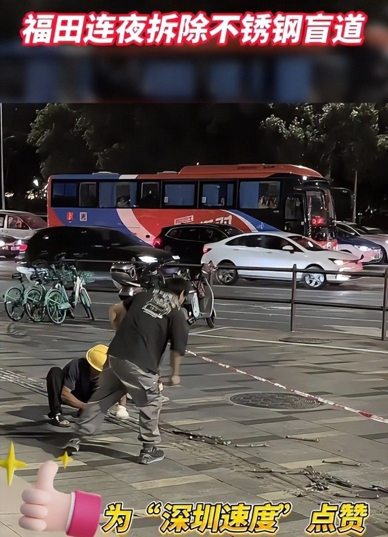 32. 没想到节目播出当晚,深圳福田区连夜拆除40余处问题盲道,全部更换为防滑材料。
